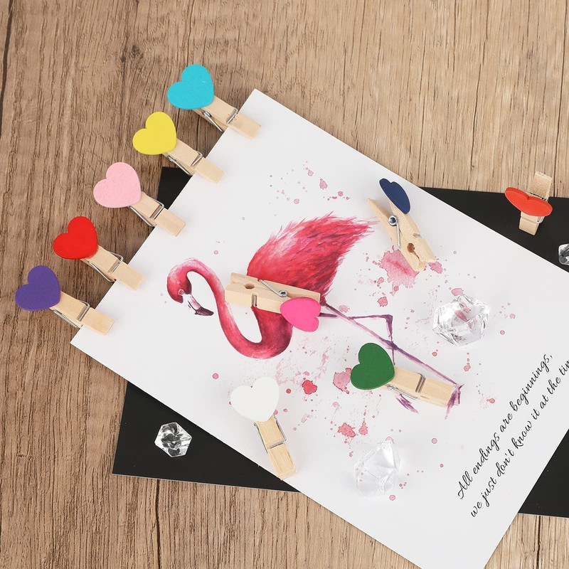 - 【The Photo clips are designed for crafts】The clips hold together well and are easy to use. You can also write something on the hearts with the right pen. Our customer use these wooden pegs to hanging up kids art work and hanging photographs and they use for crafting. Perfect for presenting photos, a homemade advent calendar, wedding or for decoration.