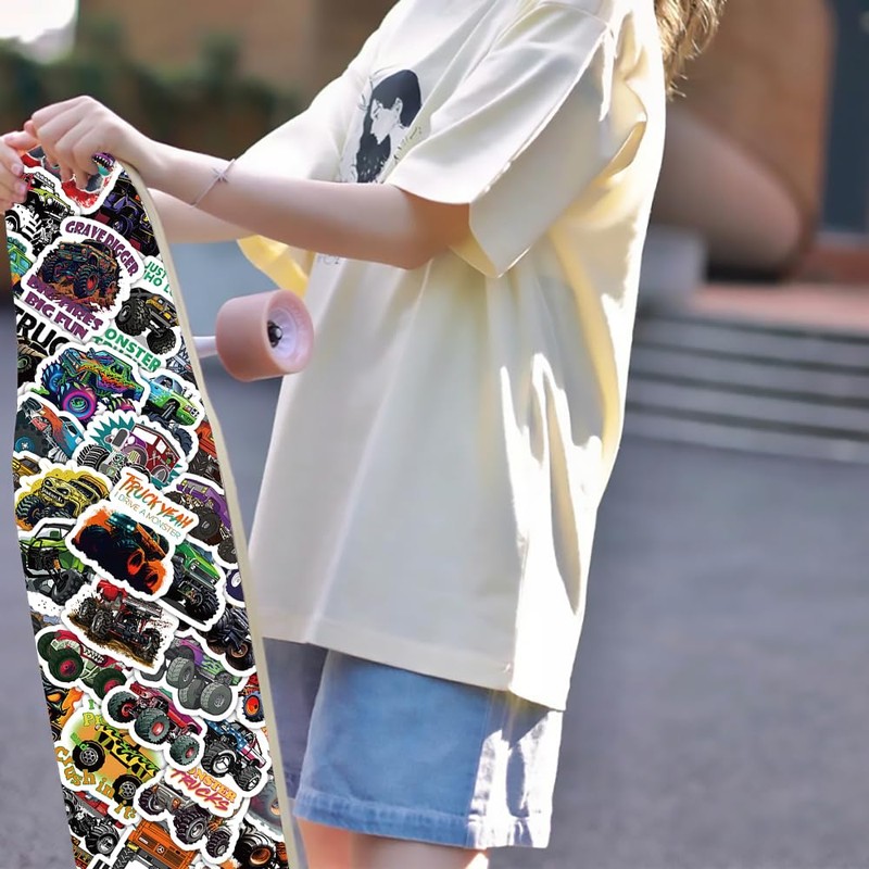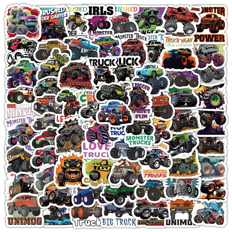 100pcs Monster Jam Trucks Stickers Kawaii Small Stickers Decorative Masking Stickers for Personalize Laptop Scrapbook Daily Planner