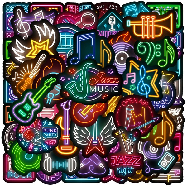 100pcs Neon Music Waterproof Vinyl Stickers - Music Band Decor & Party Favors for Laptop, Water Bottle, Skateboard, Classroom