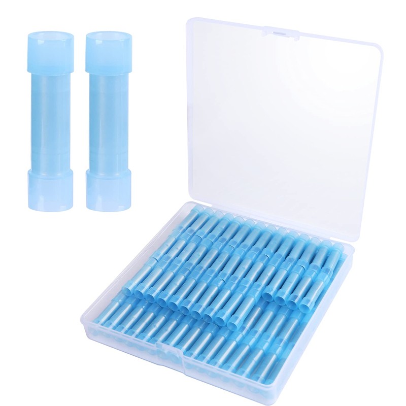 100pcs PA66 Nylon 16-14 AWG Wire Connectors Electrical Crimp Butt Connector Fully Insulated Splice Wire Terminals Blue