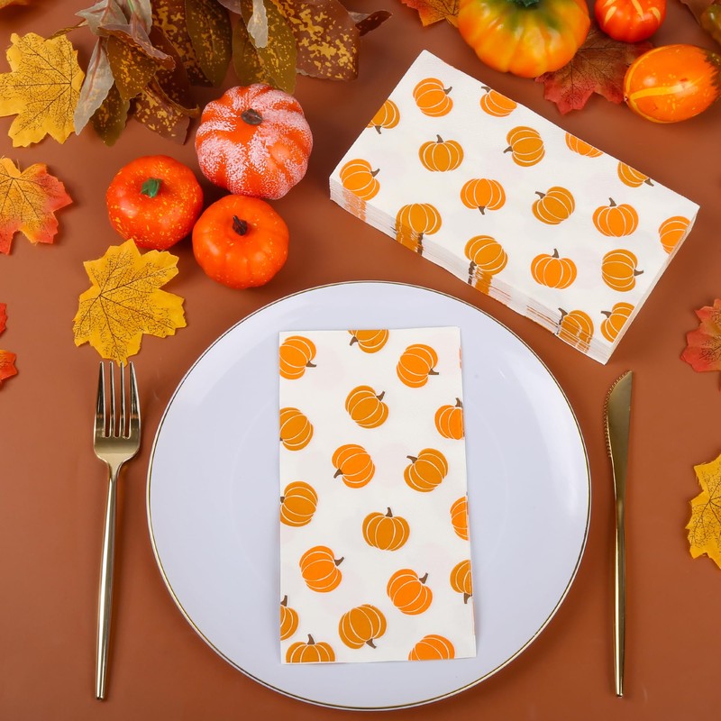 - Festive Pumpkin Design: Elevate your fall table decor with these charming disposable napkins featuring vibrant pumpkin patterns. Perfect for Thanksgiving dinner, harvest parties, and Friendsgiving celebrations, these decorative napkins add a warm autumn touch to any table setting