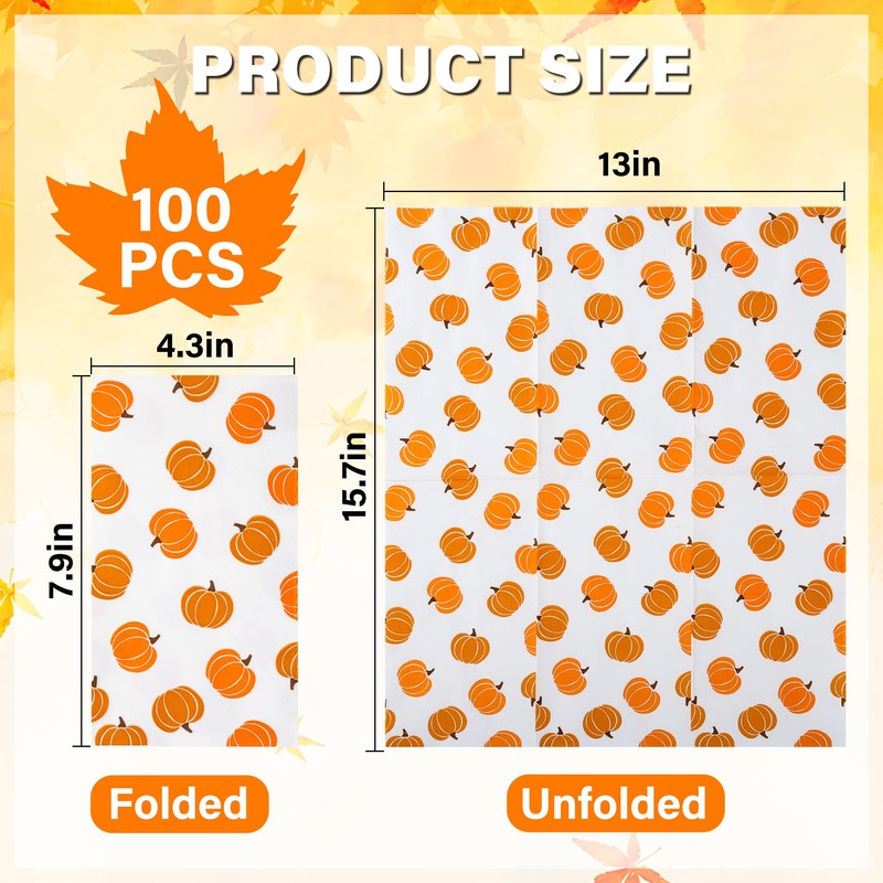 - Bulk 100-Pack Value: Get ready for the season with 100 high-quality paper napkins! Ideal for large gatherings, family dinners, or everyday use, this bulk set ensures you’re always prepared for fall festivities without frequent restocking