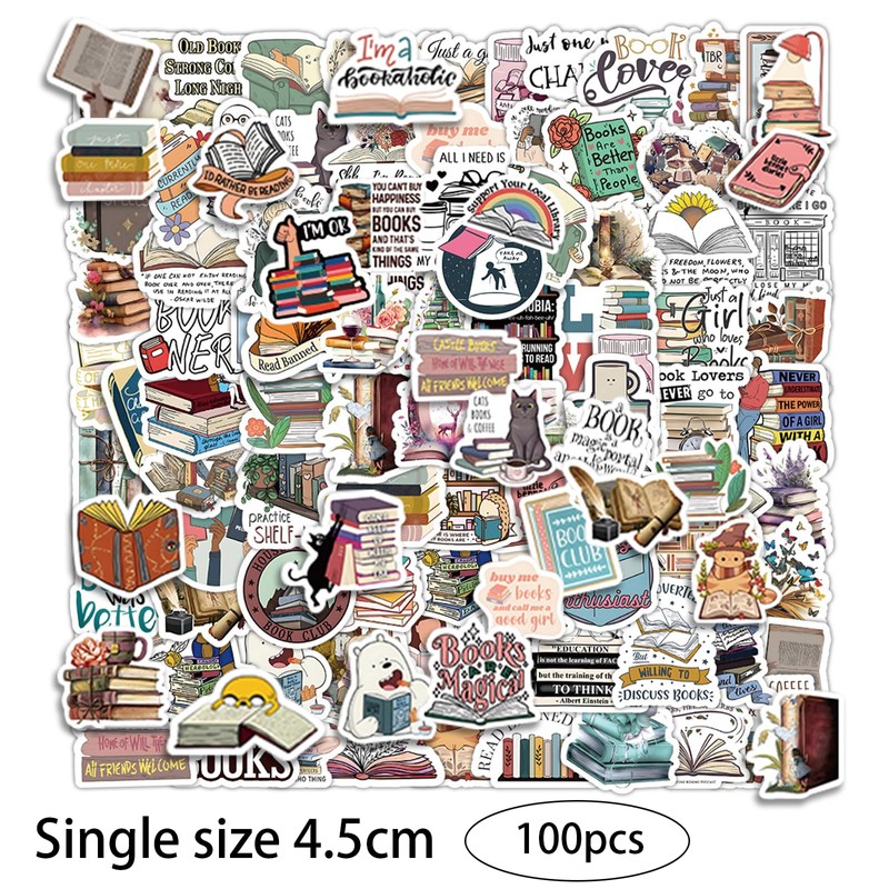 100PCS Reading Graffiti Book Stickers Bookish Sticker Exquisite Waterproof Decoration for Skateboards, Cars, Water Bottles, Suitcases, Mobile Phones, Laptops, Teenagers and Children