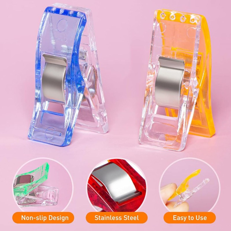 - 【Safe and Practical】With wide opening and flat base, this clip could hold layers of fabric easily and smoothly. This sewing clips with quality plastic, sturdy, transparent and colorful.