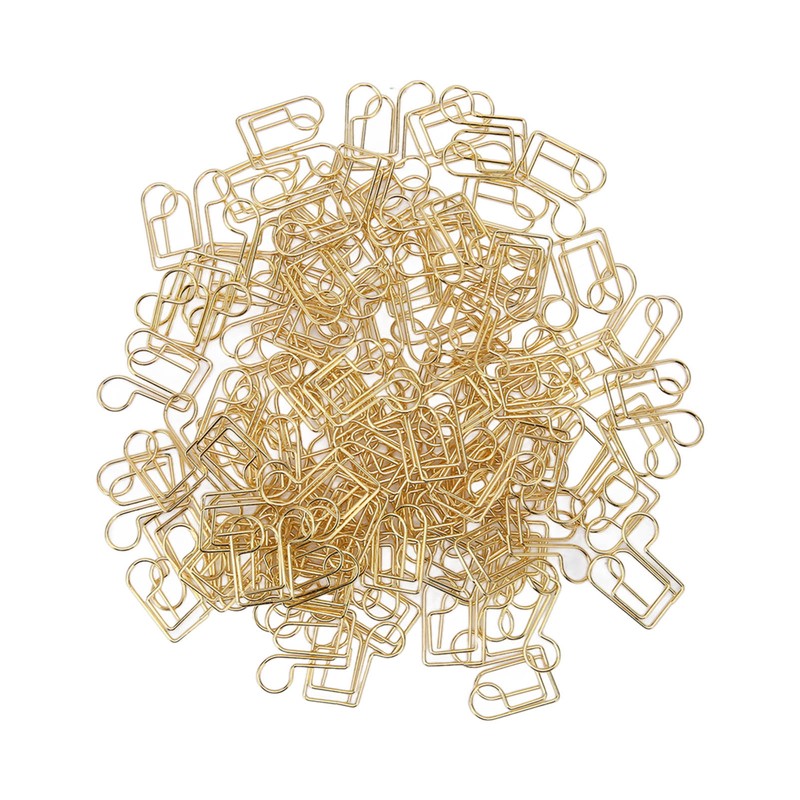100pcs Shaped Paper Clips Prevent Slip Cute Decorative Metal Small Paperclips for Document Notebook Golden Musical Note