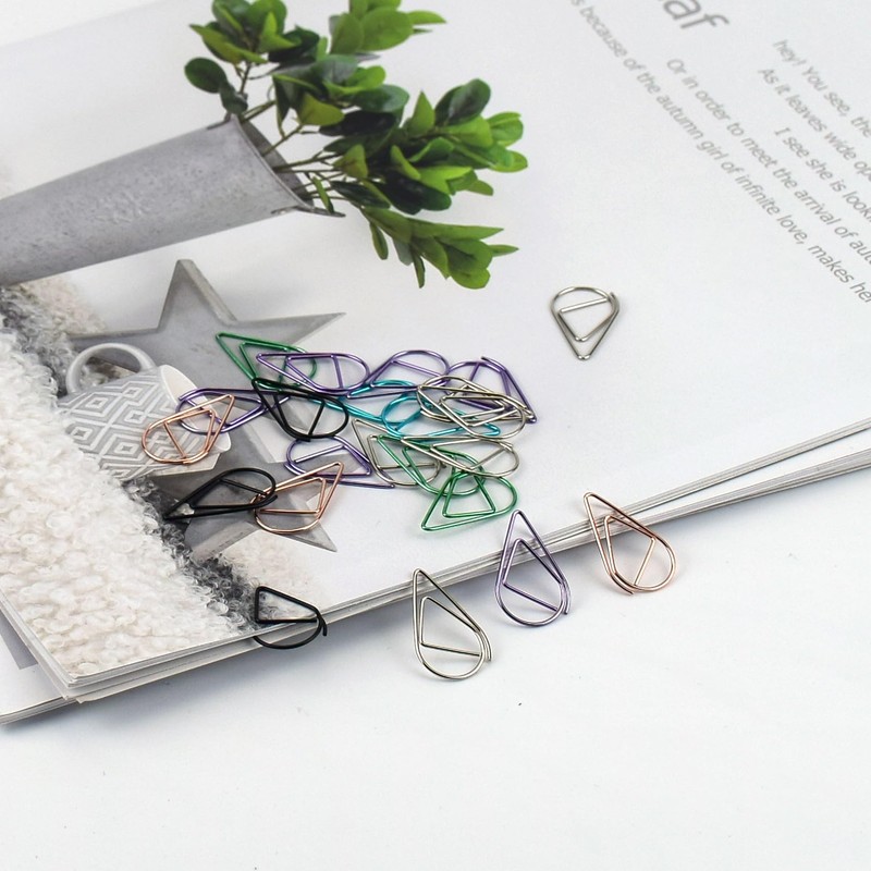 100Pcs Small Golden Paper Clips, Water Drop-Shaped Paperclips Bookmarks for Office Stationery Document, Memo, Poster, Photo (Purple)