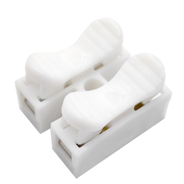 100pcs Spring Wire Connectors, Spring Clamp Terminal Quick Splice Wire Terminals 10A 220V 2 Pin Push Quick Wire Cable Connector White Wiring Terminal (2P)