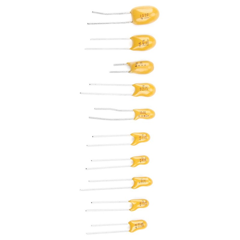 100pcs Tantalum Capacitor Assortment - 16V, 1UF to 100UF, 10 Values