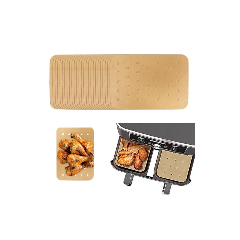 - 100Pcs Air Fryer Parchment Paper Liners, Disposable Air Fryer Liners Compatible with Ninja Foodi Air Fryer, Rectangle Perforated Baking Paper for 8 Quart 6-in-1 Dual Basket Accessories