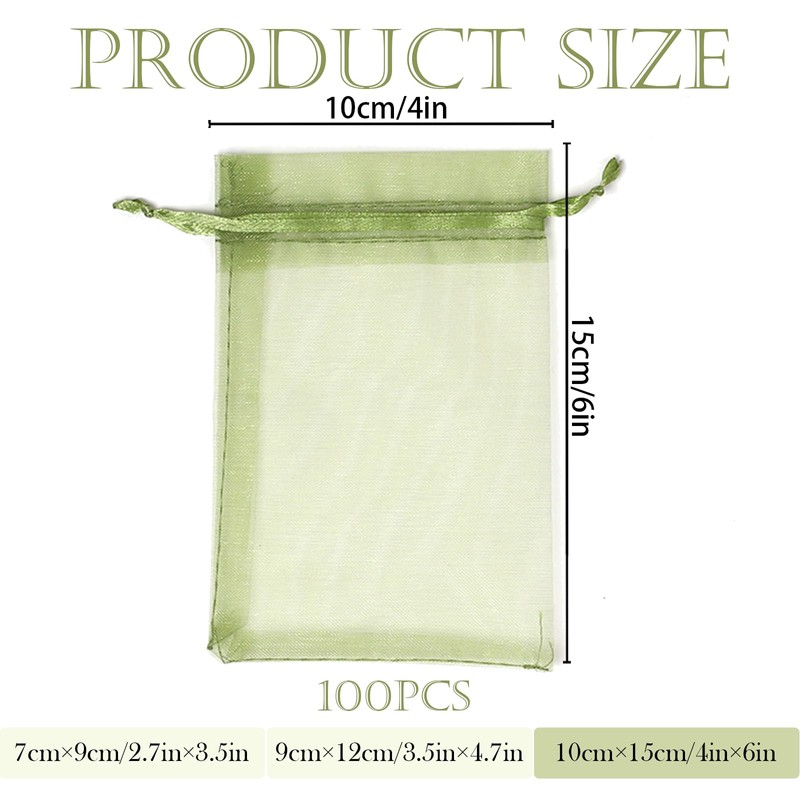 100pk Army Green Organza Gift Bags,10x15cm Small Organza Favor Bags,Wedding Jewelry Pouches with Drawstring,Mesh Candy Favour Bag Party Sweet Bags for Birthday,Wedding,Christmas,Gift Wrapping