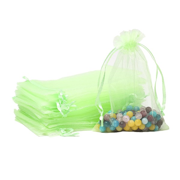 100pk Light Green Organza Gift Bags,10x15cm Small Organza Favor Bags,Wedding Jewelry Pouches with Drawstring,Mesh Candy Favour Bag Party Sweet Bags for Birthday,Wedding,Christmas,Gift Wrapping