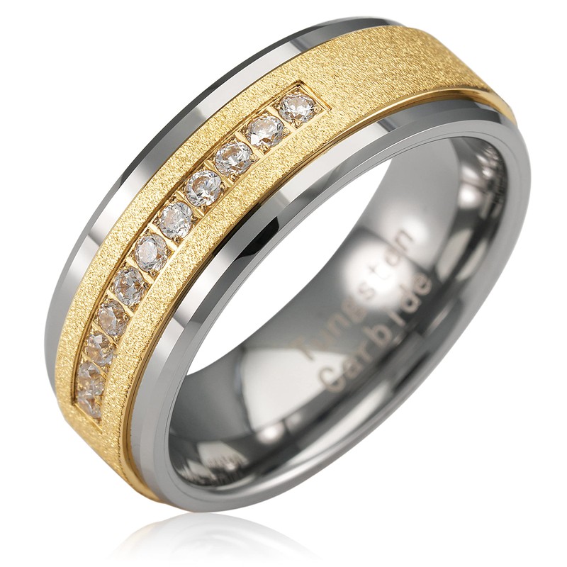 - WATER & SCRATCH PROOF: Gold Sandblast Tungsten ring with Cubic Zirconia Inlaid is scratch resistant & waterproof