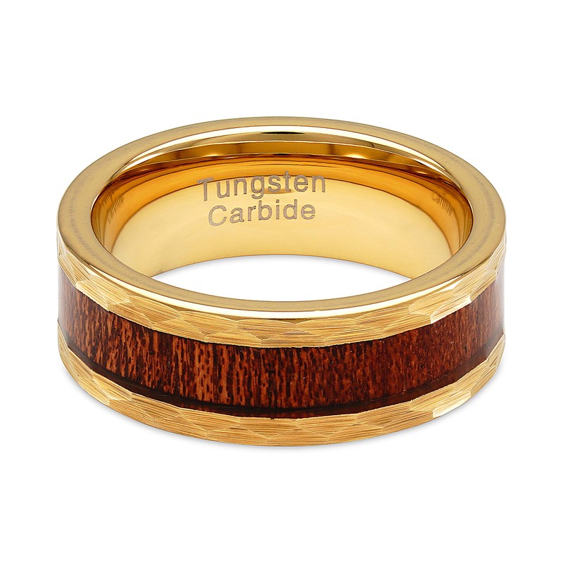 100S JEWELRY Tungsten Rings For Men Women Wedding Band Gold Hammered Edge Wood Inlaid Sizes 8-15 (14)