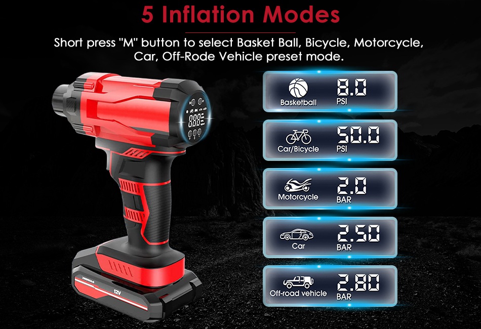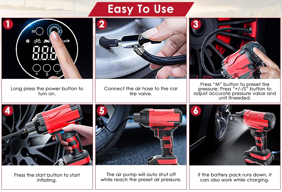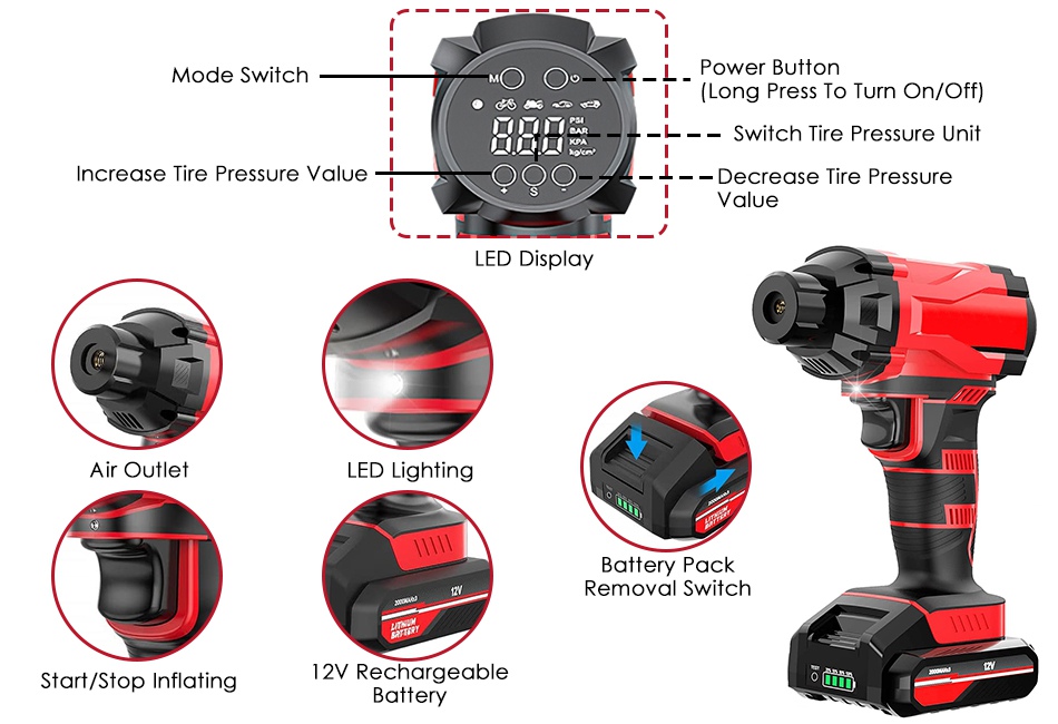 | 150PSI Cordless Car Tire Pump 6000mAh Rechargeable Electric Air Compressor with LED Light  Product Detail Image GalleryProduct DescriptionOverview: