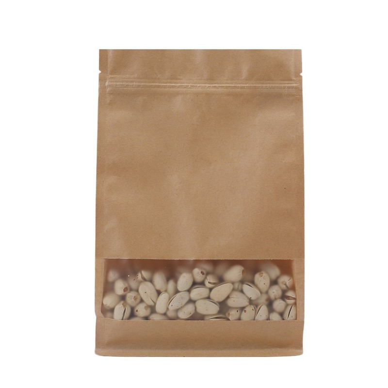 100x Premium Brown Kraft Packing Zip Top Lock Flat-Bottom Box-Like Pouches w/Window 10x20+6cm (3.9x7.8+2.3")