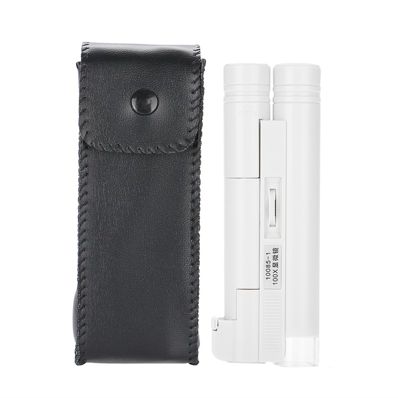 100X Zoom Microscope Double Tube Jewelry Magnifier Pocket Magnifying Glass with LED Light