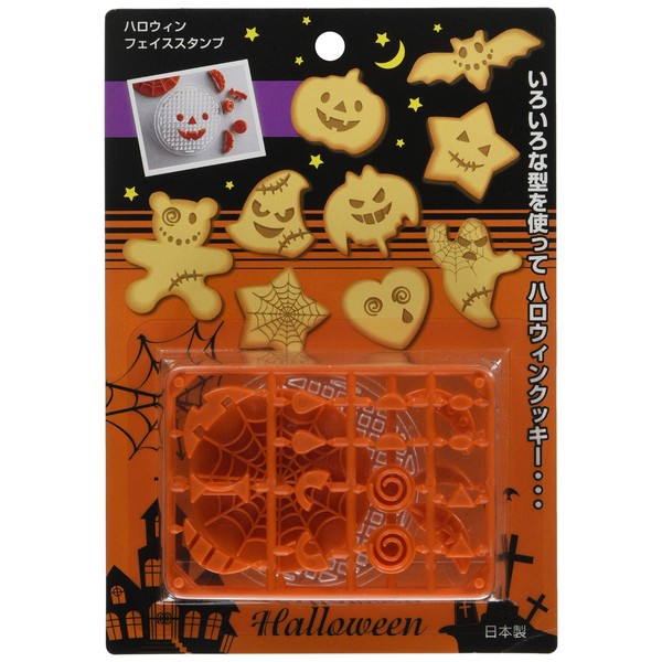 タイガークラウン クッキー型 オレンジ 100×72×19mm ハロウィン フェイス スタンプ ABS樹脂 押し型 収納ケース付 1755 4個入
