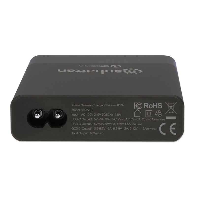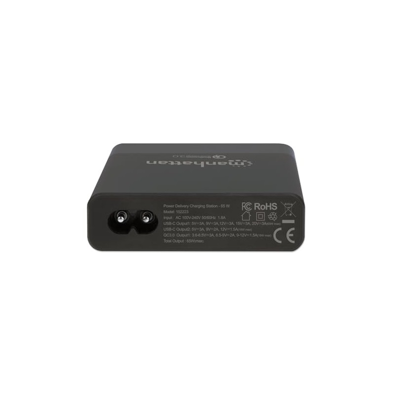 102223-65 W Power Delivery Charging Station – 2× USB‑C PD (60 W + 18 W) & 1× USB‑A Quick Charge 18 W