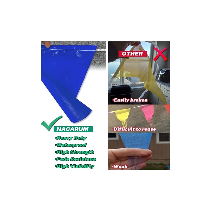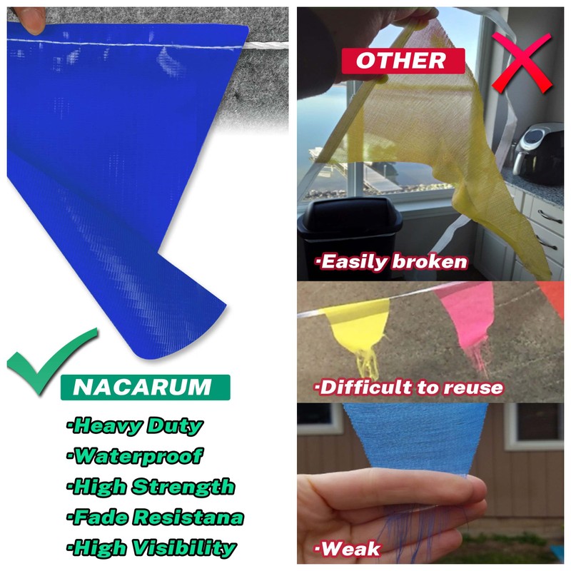 - 🚩OSHA Certified: The Nacarum pennant banner flag has undergone rigorous testing and secured OSHA certification at an impressive 500-pound rating. This makes it the ideal choice for construction sites, parking lots, outdoor events, and other high-risk areas.