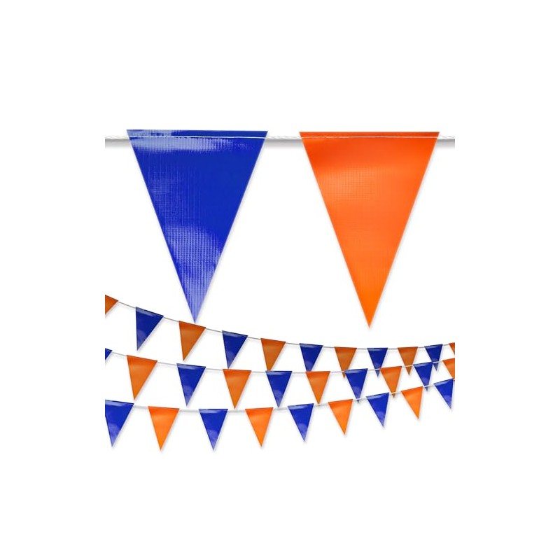 【102FT】Orange and Navy Blue Pennant Banner Fabric Triangle Flag| Heavy-Duty Outdoor | Nautical backstroke flags| OSHA 500lb Rated | Strand Fade Resistant