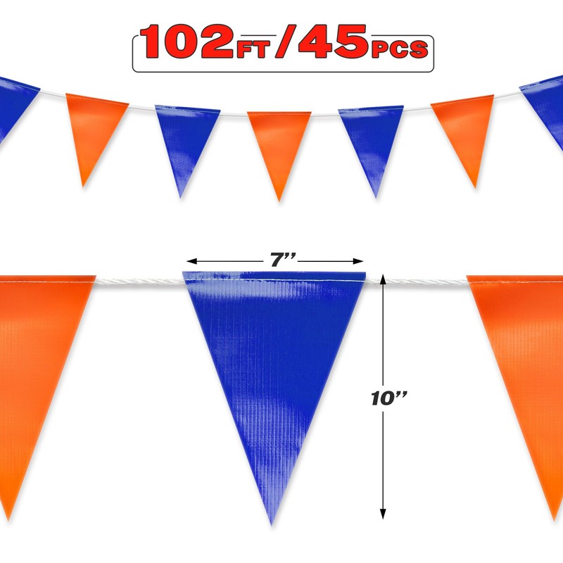 - 🚩Premium Material: Nacarum blue and orange pennant banner flag is crafted from high-quality PVC mesh material, surpassing competitors with its thickness and durability, ensuring a long-lasting product.