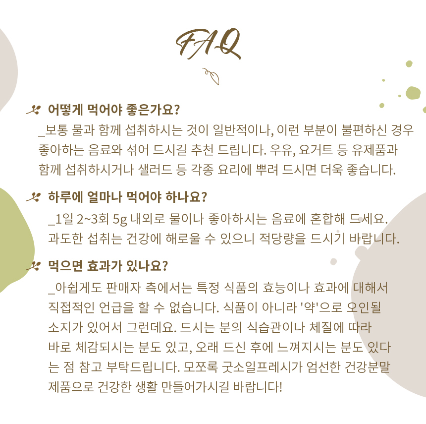 - Recommended Intake, Intake Method, Precautions During Intake, and Possible Side Effects: Refer to detail page