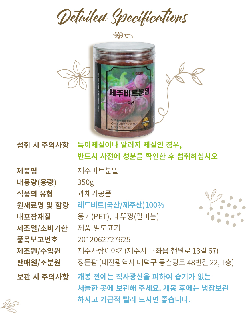 제주산 레드 비트 빨간무 첨채근 분말 1050g