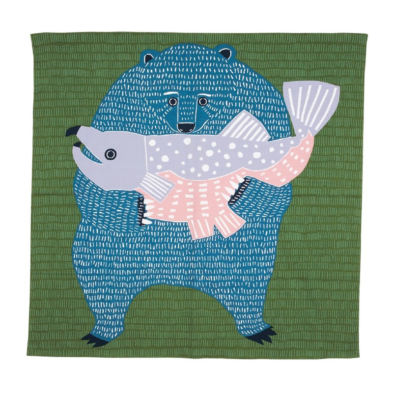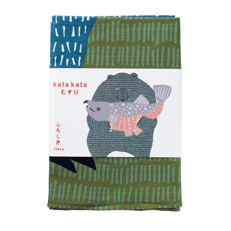 むす美 風呂敷 ふろしき 大判 約105cm kata kata くまとさけ グリーン 日本製 20012-301