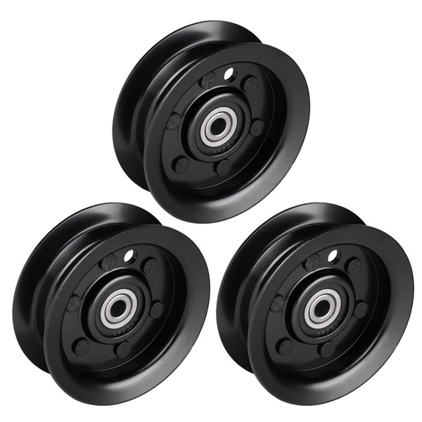- 【Package Included】3 Flat Idler Pulleys. Made of high quality material, durable and practical to use, sturdy and easy to install, a perfect match for your lawn deck.