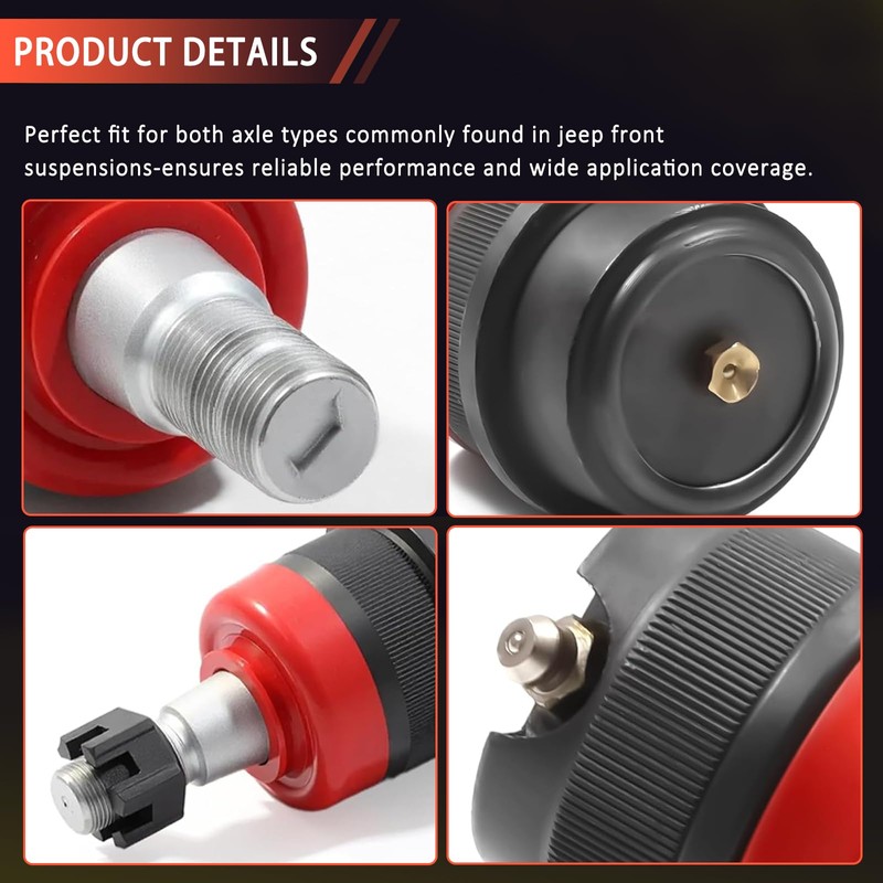 - GOOD FIT & COMPATIBILITY: Set includes 4 ball joints (2 upper and 2 lower) to fit Dana 30 and Dana 44 front axles. Fits 1987 - 2006 Jeep Wrangler YJ & TJ etc.