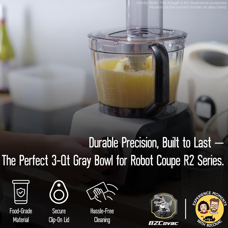 • Complete Replacement Set - Includes one 106458S transparent cutter lid and one 112204S gray bowl, designed as a full-capacity 3-quart combo for Robot Coupe R2 series processors