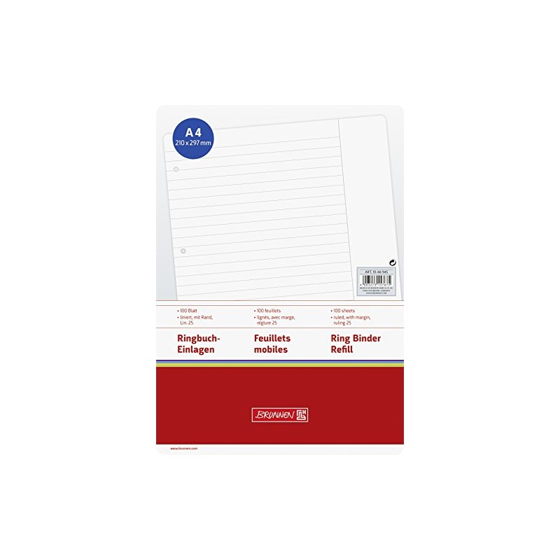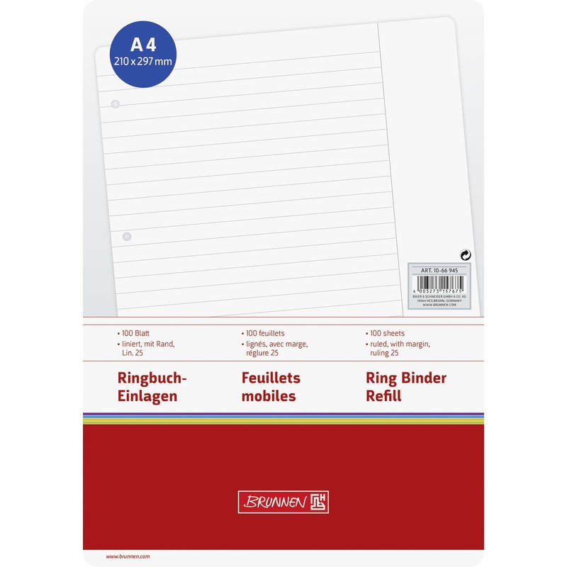1066945 Brunnen A4 Ring Binder, Loose Leaf Refill Pad, 25 Lines per Page with Margin, 100 Sheets, 70 g/m²