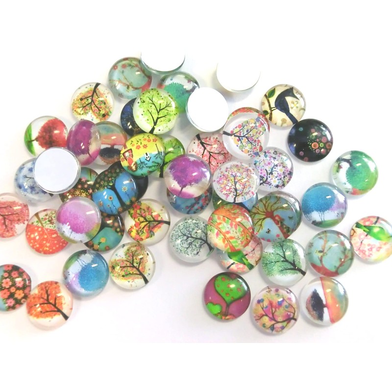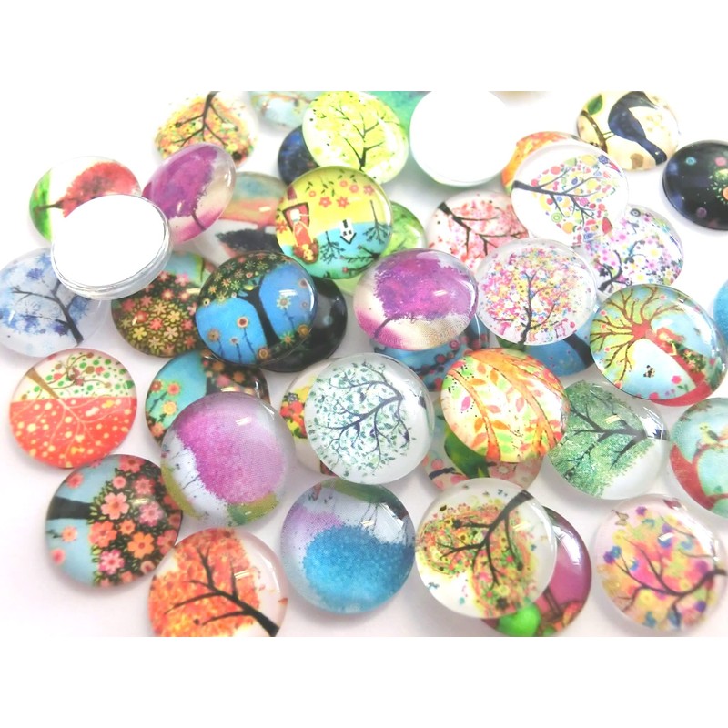 #107 Glass Cabochons 12 mm Tree of Life Motif 12 x 4 mm Round Flat Glass Cabochons (Pack of 50)