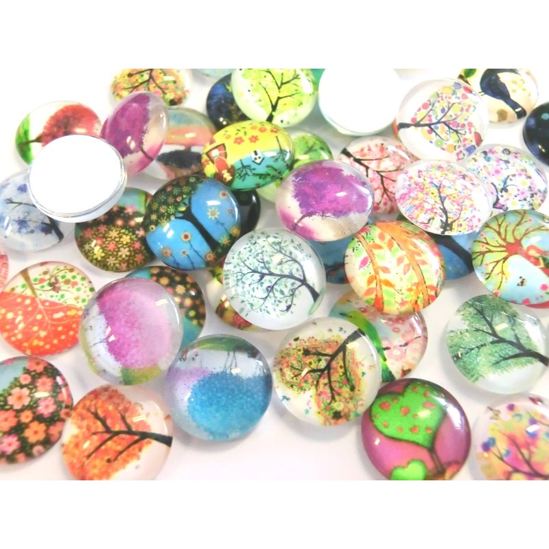 #107 Glass Cabochons 12 mm Tree of Life Motif 12 x 4 mm Round Flat Glass Cabochons (Pack of 50)