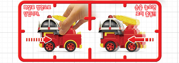 로이를 뒤로 당겨보세요! 손을 놓으면 로이가 앞으로 출동! 로이가 한속에 쏙~ 들어와요!