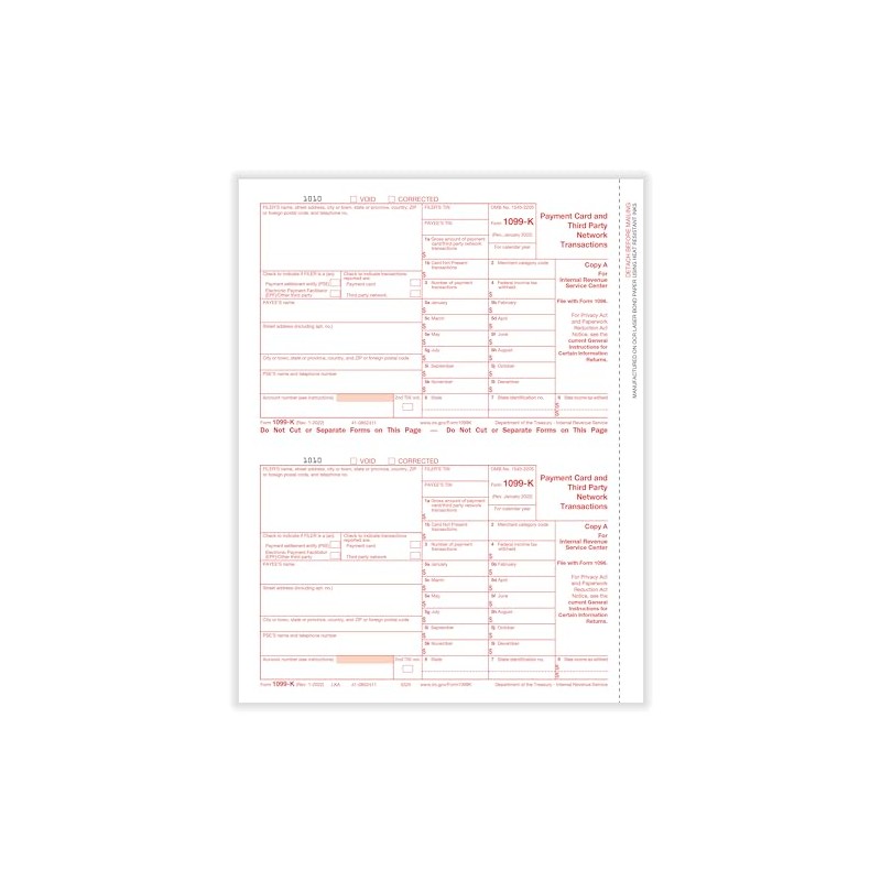 1099-K IRS Federal Copy A Tax Form, Pack of 100 Forms