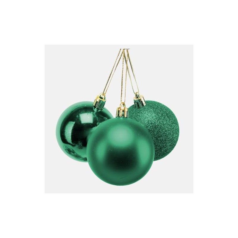 - 🎄🎅 This pack contains 3 emerald green baubles an assortment of glitter, matte and shiny surface finish. Each bauble measures approximately 10cm and comes with a silver top with a silver string loop attached.