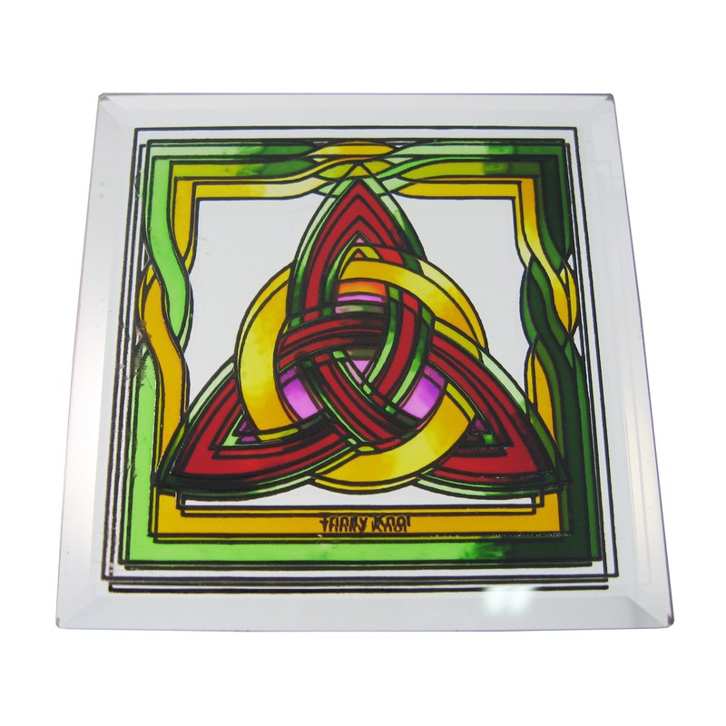 10cm Stained Glass Loose Coaster Trinity Knot With A Red & Yellow Design