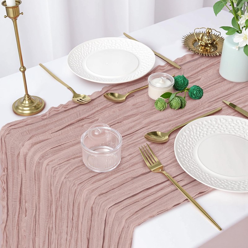 - Cheesecloth-Inspired Design: Lightweight Polyester Table Runner - Cheesecloth-Like Texture, Stain Resistant For Dining & Parties