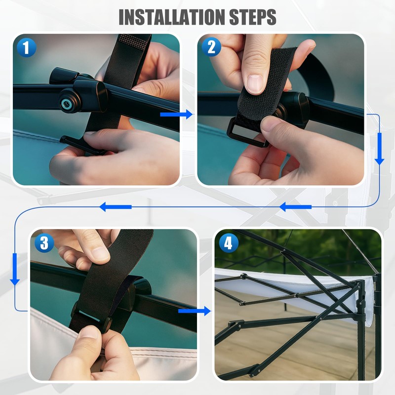 - 【Easy Installation with Straps】 Includes 12 reinforced adjustable straps for quick, tool-free attachment to any 10x10 canopy frame—no slipping or sagging even in heavy rain.