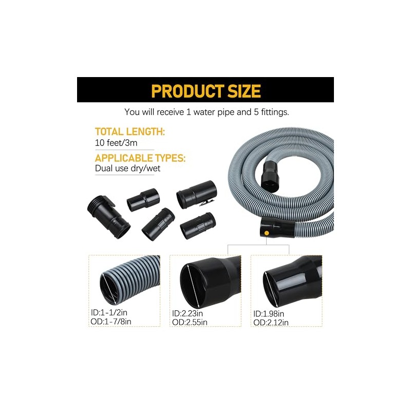 • Widely Compatible: 1-7/8-Inch Shop Vacuum Hose Compatible with Ridgid, DEWALT ,WORKSHOP Wet/Dry Vacs. Also Works With 1-7/8-Inch And 2-1/2-Inch Wet/Dry Vacuum Accessories And Attachments
