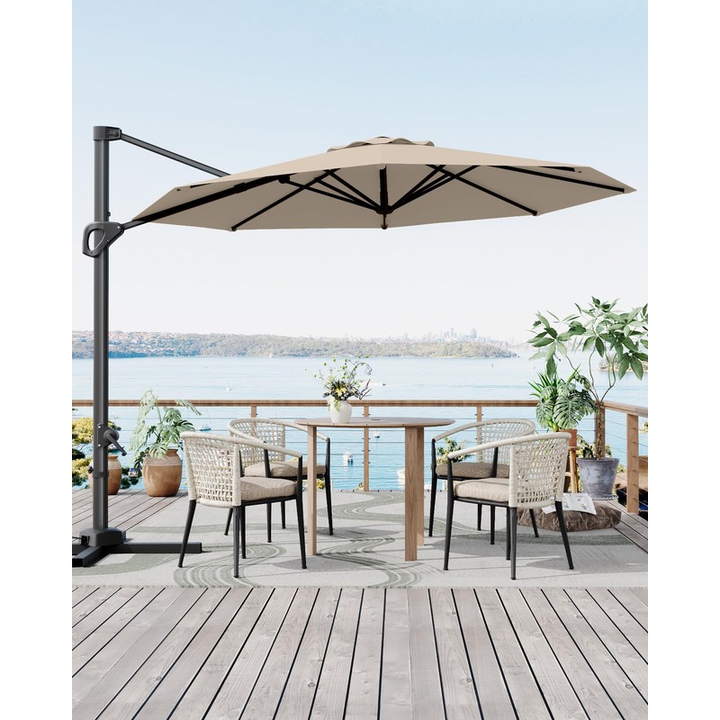 10FT Outdoor Patio Umbrella Large Cantilever w/Base Included Market Sun Shade Windproof Offset with 360-Degree Rotation for Garden Deck Pool Patio, Tan