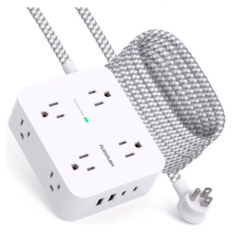 - 【Overload Surge Protection】- The surge protector with overload protection protects your electrical appliances from lighting, surges or spikes. The minimum energy-absorbing capacity of 900 Joules. Lighted on/off switch with integrated circuit breaker for overload protection of all outlets.(The "Surge Protected” indicator light on to show your devices are protected)