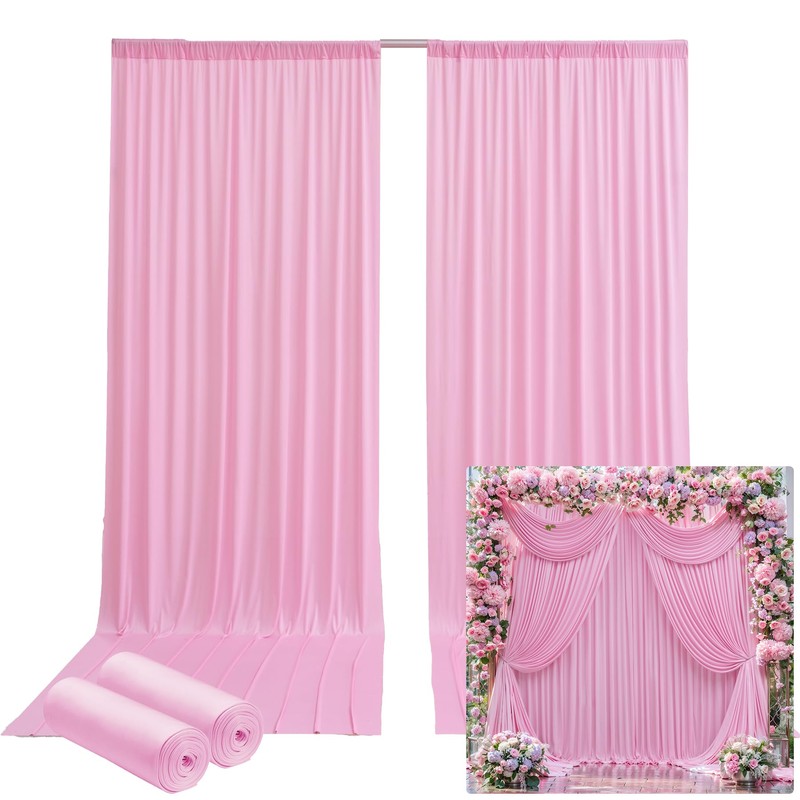 - Wrinkle Free Baby Pink Backdrop Curtain: This Baby Pink silky soft wedding backdrop for reception is made of wrinkle free material, known for its soft and silky texture, which will give you an extraordinary feeling of touch. The backdrop is exquisitely sewn, smooth and durable fpolyester with natural drape, add more elegance and romance to your weddings.