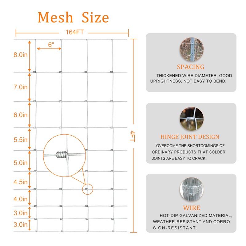 - Heavy-duty thickening: The thickened cattle fence is woven with high-strength galvanized No. 10 steel wire. The grassland protection fence has good hardness, is sturdy and durable, and the farm fence also has better formability and flexibility