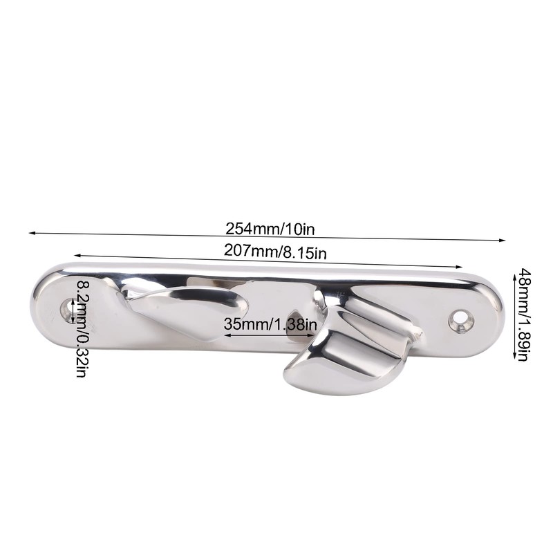 - DIMENSIONS - Boat deck line cleat is 254mm/10in long, 48mm/1.89in wide, the hole diameter is 8.2mm/0.32in.