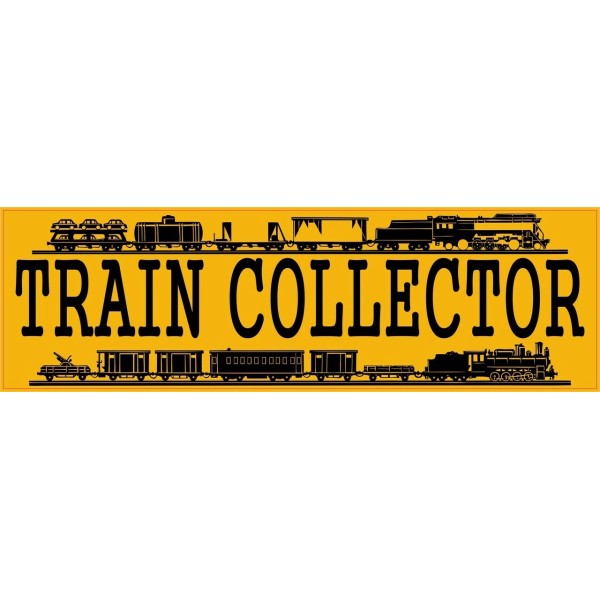 10in x 3in (254mm x 76mm) Train Collector high quality vinyl bumper sticker. These stickers are waterproof, scratch and UV resistant. They are proudly made in the USA with air release vinyl. This special vinyl will allow you to easily smooth out most bubbles after installation. Higher Quantities Available.