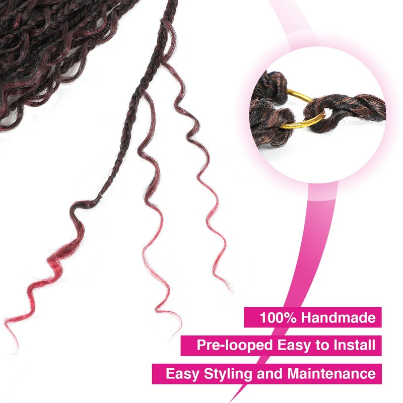 Style:Pre Looped Goddess Box Braids Crochet Hair, Boho Braids Crochet Hair.