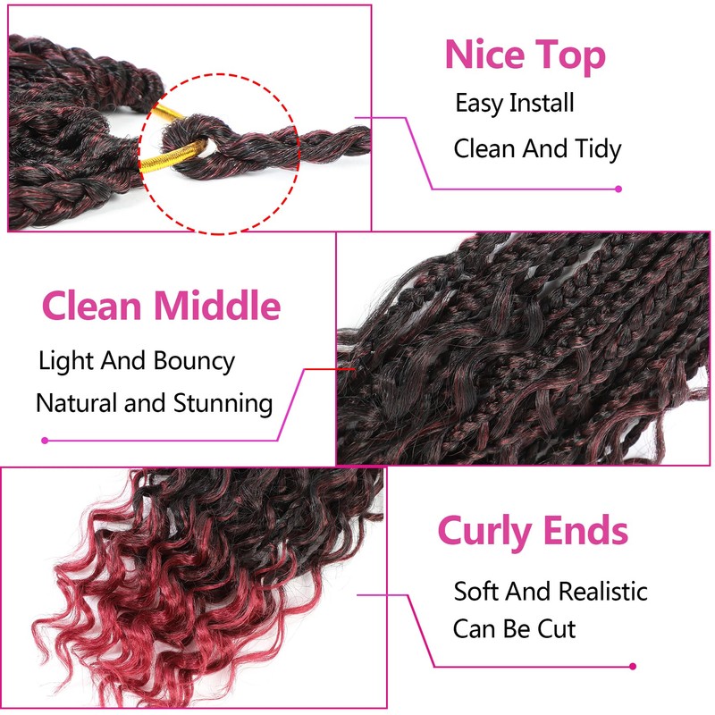 - 2、Easy To Install:Wodun Goddess Box Braids is pre-looped,the loops were easy to pull the braids through,you can save more time.