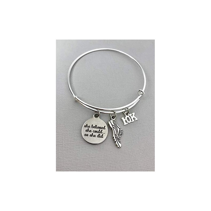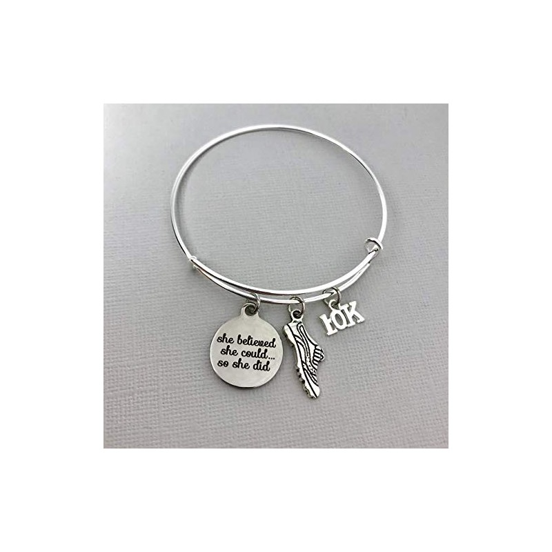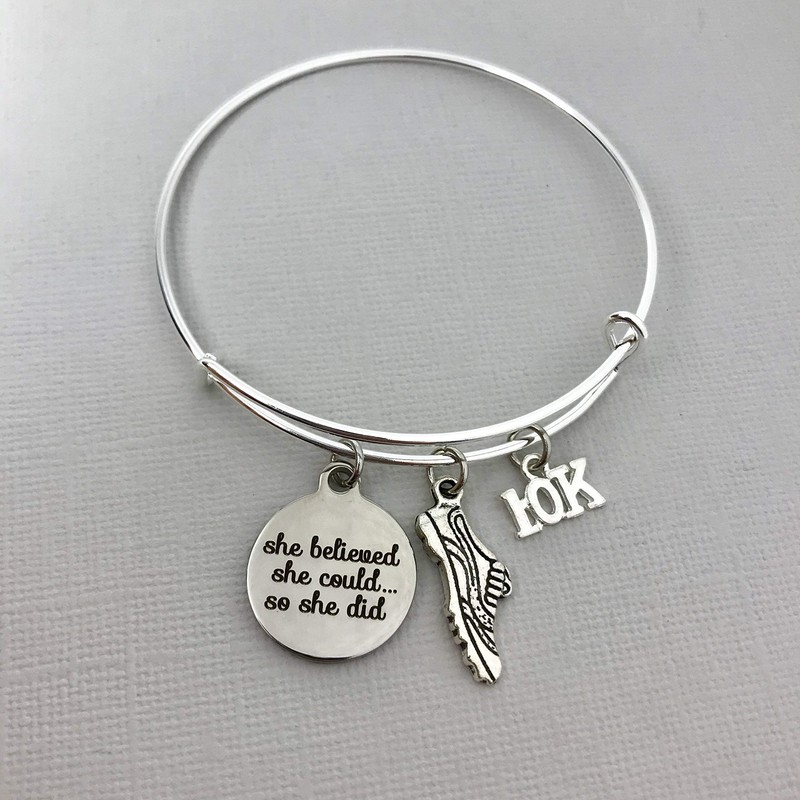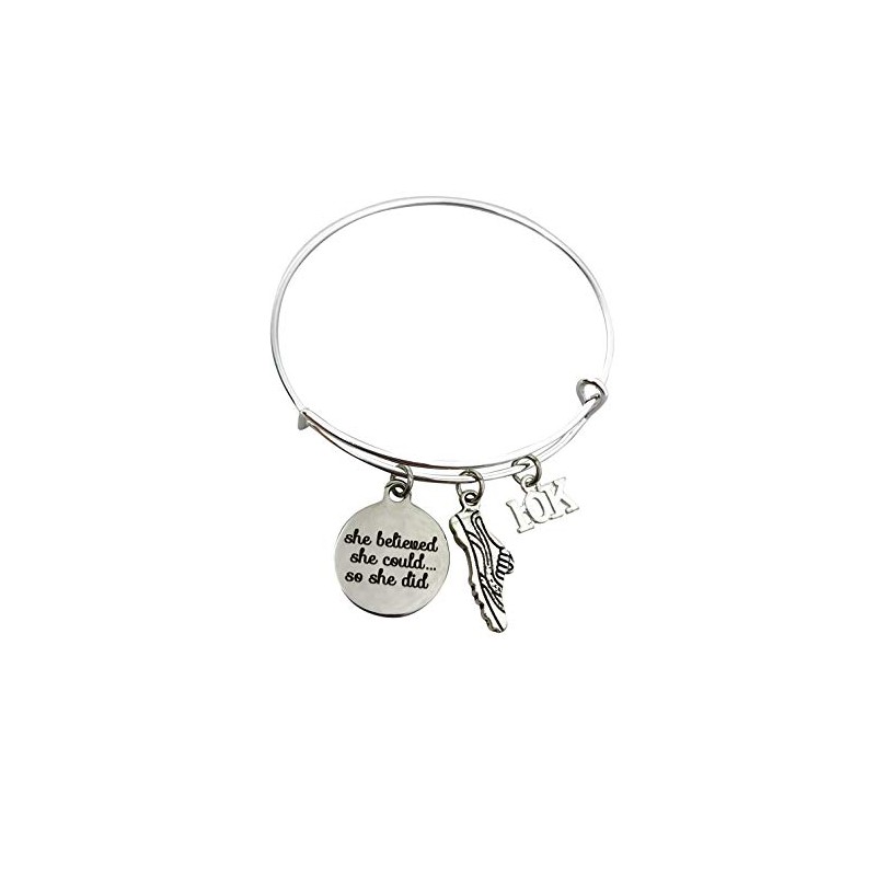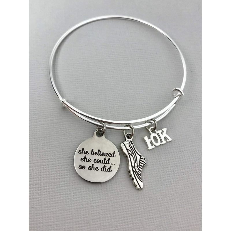 10K Running Gift Adjustable Bangle Charm Bracelet Jewelry She Believed She Could so She Did